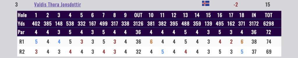 Íslandsmeistarinn 2017 lék frábært golf á öðrum hringnum eða -3 og er hún samtals á -1 eftir 36 holur (74-69). Mótið heitir Investec SA Women’s Open og fer fram á Westlake Golf Club.