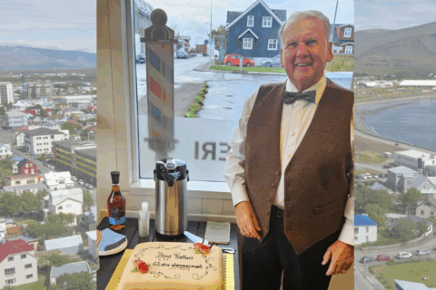 Hinrik Haraldsson hélt í dag upp á 60 ára starfsafmæli sitt sem hárskeri – en hann hóf rekstur á Rakarastofu Hinriks þann 1. október árið 1965.