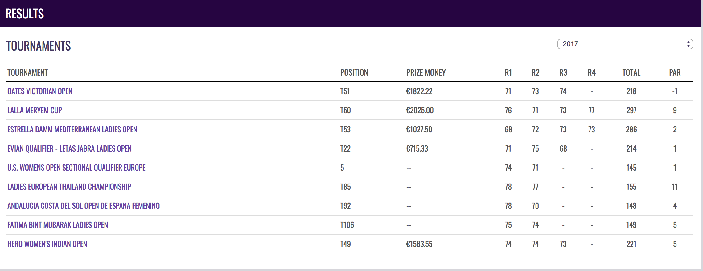 Hún lék frábært golf á fyrstu tveimur hringjunum en hún endaði á -7 samtals (68-69-72). Hún var fimm höggum á eftir Celine Boutier frá Frakklandi sem sigraði á -12 samtals og Solar Lee frá Suður-Kóreu varð önnur á -8 samtals.