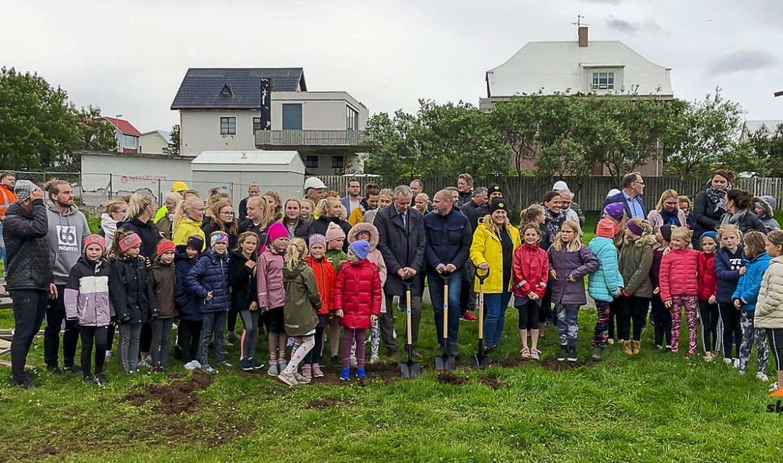 Guðmundur Claxton formaður FIMA, Marella Steinsdóttir formaður ÍA og Sævar Freyr Þráinsson bæjarstjóri Akraness tóku fyrstu skóflustunguna.