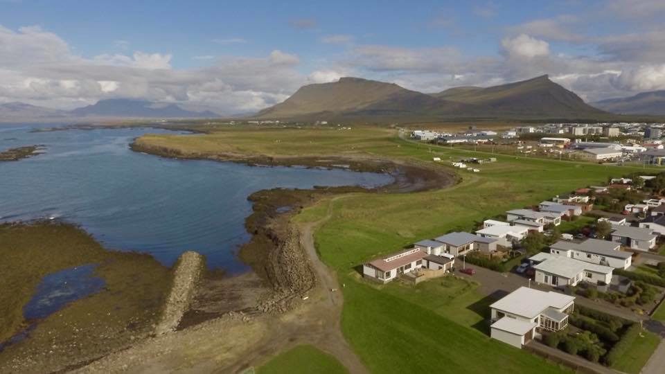 Hér er horft yfir Kalmansvík frá gatnamótum Esjubrautar og Vesturgötu.