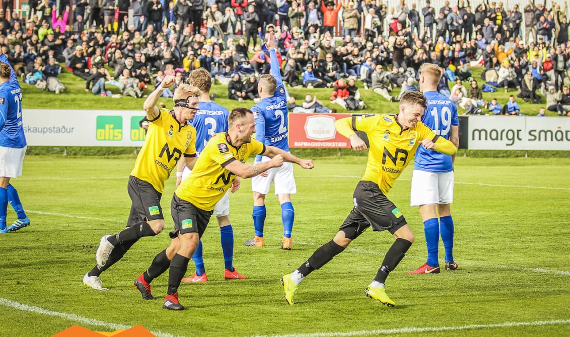 Einar Logi Einarsson og Steinar Þorsteinsson skoruðu mörk ÍA í dag og hér má sjá myndasyrpu frá gleðinni frá skagafrettir.is.