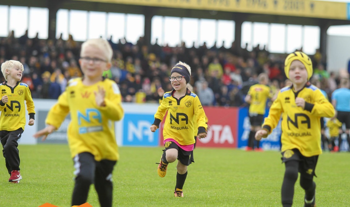 Krakkarnir fengu að ganga inn á leikvöllinn með leikmönnum beggja liða inn á Norðurálsvöllinn.