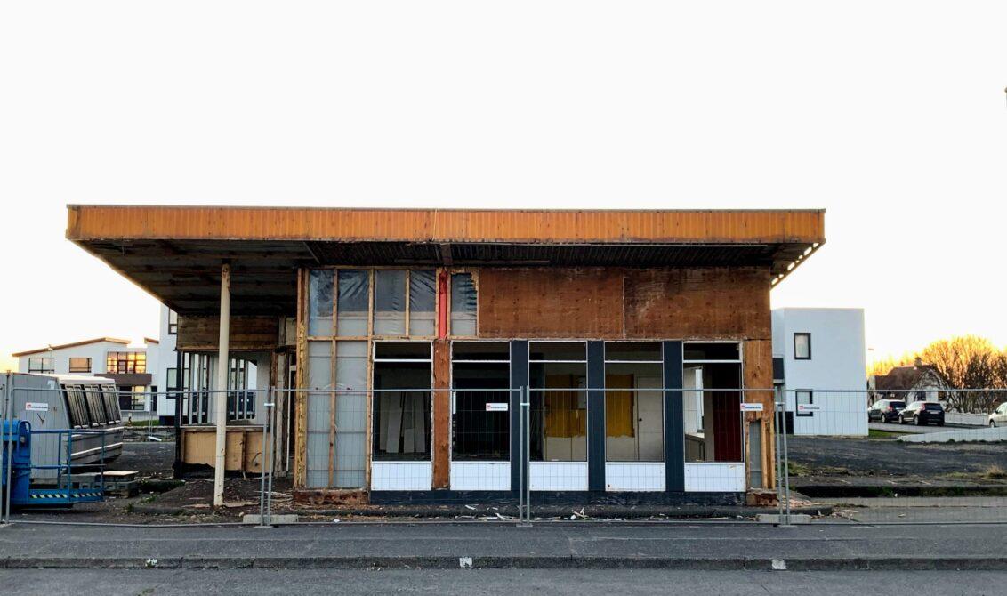 Framundan er uppbygging á þessum byggingareit – en fjölbýlishús verður byggt á þessum stað og á jarðhæðinni er gert ráð fyrir rými fyrir verslun – eða þjónustu.