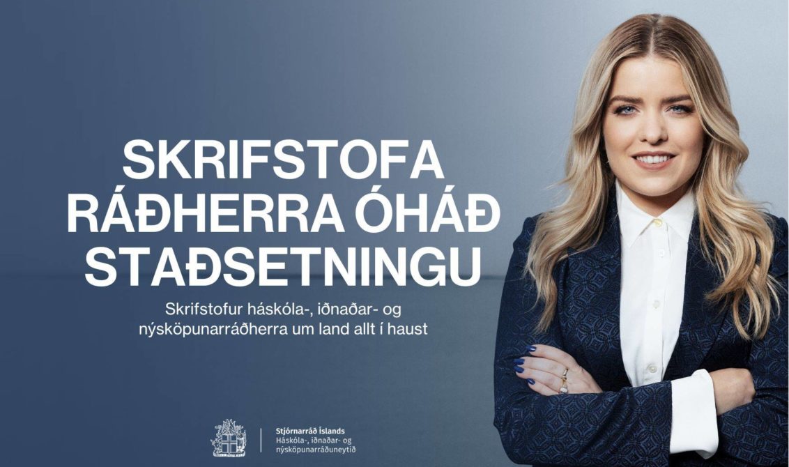 Frá því að nýtt háskóla-, iðnaðar- og nýsköpunarráðuneyti tók til starfa í febrúar hefur ráðuneytið verið opið fyrir störfum óháð staðsetningu. Í því felst að starfsemi ráðuneytisins er ekki bundin við einn ákveðin stað þrátt fyrir að aðalstarfsstöð þess sé staðsett í Reykjavík. Þannig geta starfsmenn ráðuneytisins unnið að heiman eða frá þeim stað á landinu sem best hentar hverju sinni. Ráðherra er þar engin undantekning og með því að staðsetja skrifstofu ráðherra um víðs vegar um landið gefst mikilvægt tækifæri til aukinnar tengslamyndunar og samstarfs við háskóla, stofnanir, fyrirtæki, sveitarfélög og einstaklinga um land allt.