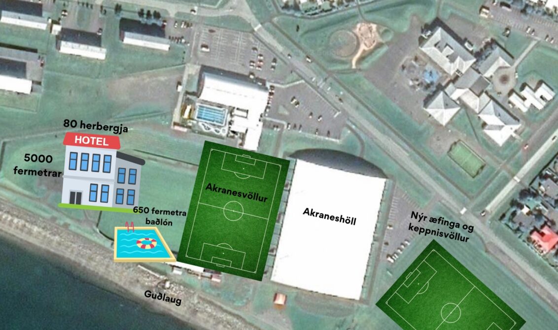 Þar er sagt frá þeirri hugmynd að snúa Akranesvelli í 90 gráður og þar með myndi völlurinn liggja samhliða vesturhlið Akraneshallar.