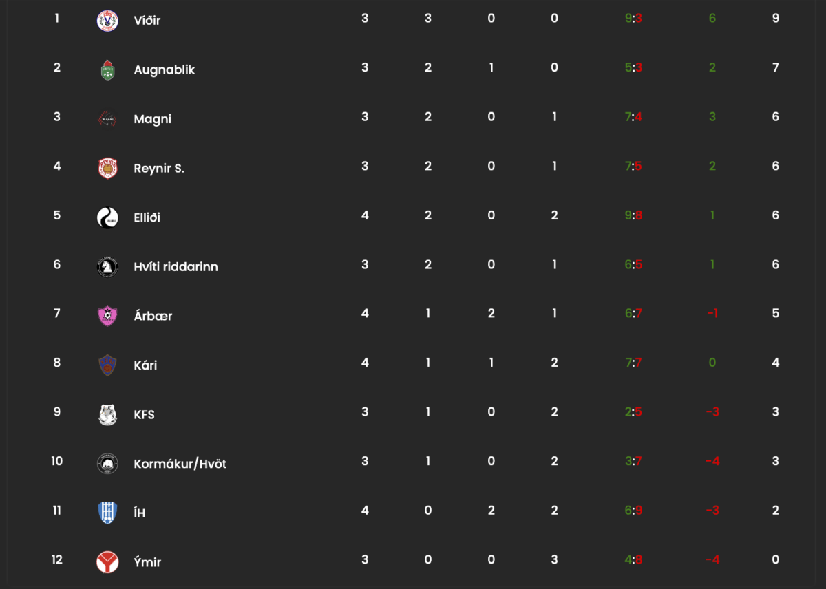 Kári var þriðja neðsta sæti deildarinnar eftir þrjár umferðir með 1 stig er í dag með fjögur stig í 8. sæti en alls eru 12 lið í deildinni.