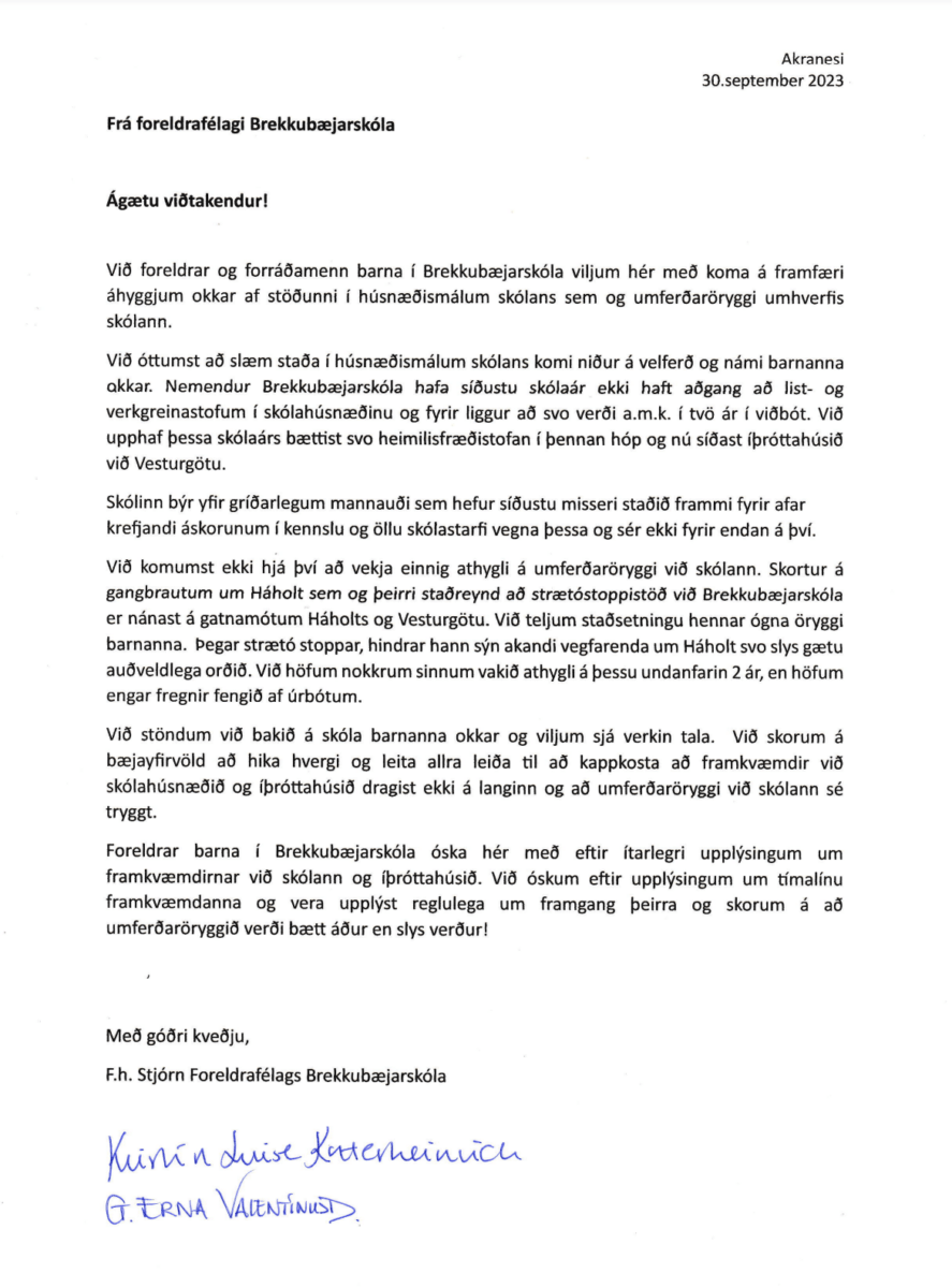 Við foreldrar og forráðamenn barna í Brekkubæjarskóla viljum hér koma á framfæri áhyggjum okkar af stöðunni í húsnæðismálum skólans sem og umferðaröryggi umhverfis skólann.