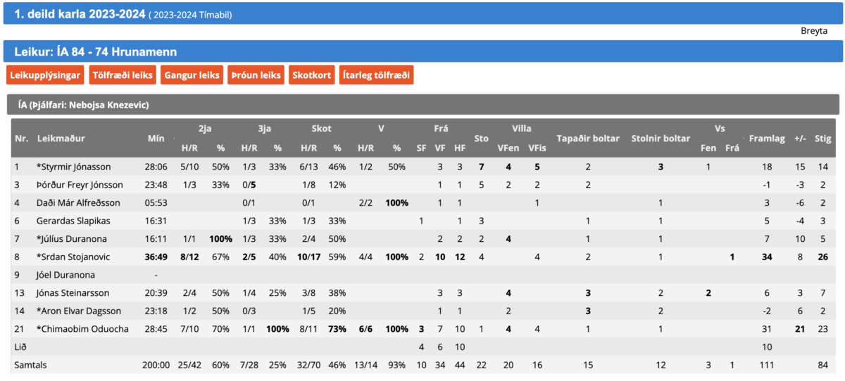 Srdan Stojanovic var stigahæstur í liði ÍA með 26 stig og 12 fráköst. Chimaobim Oduocha skoraði 23 stig fyrir ÍA og tók 10 fráköst. Styrmir Jónasson skoraði 14 stig og gaf 7 stoðsendingar.