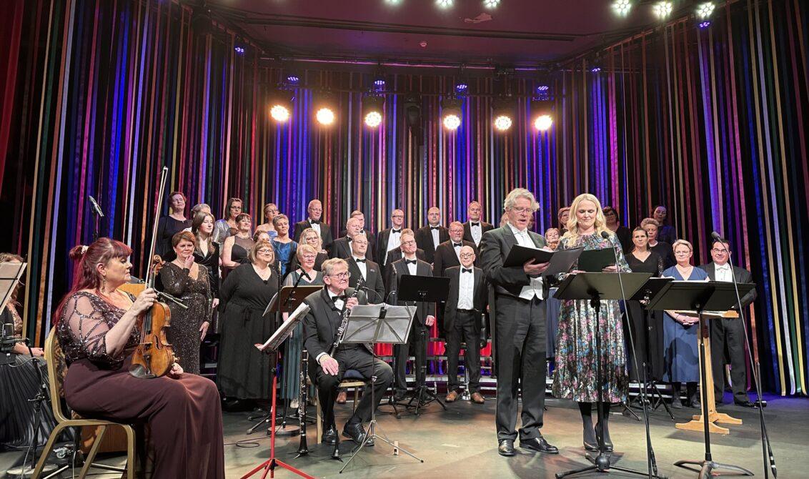 Síðkjólar og dans voru einkennismerki tónleikanna – sem voru samvinnuverkefni kórsins, Bíóhallarinnar og Kalmans Listfélags.