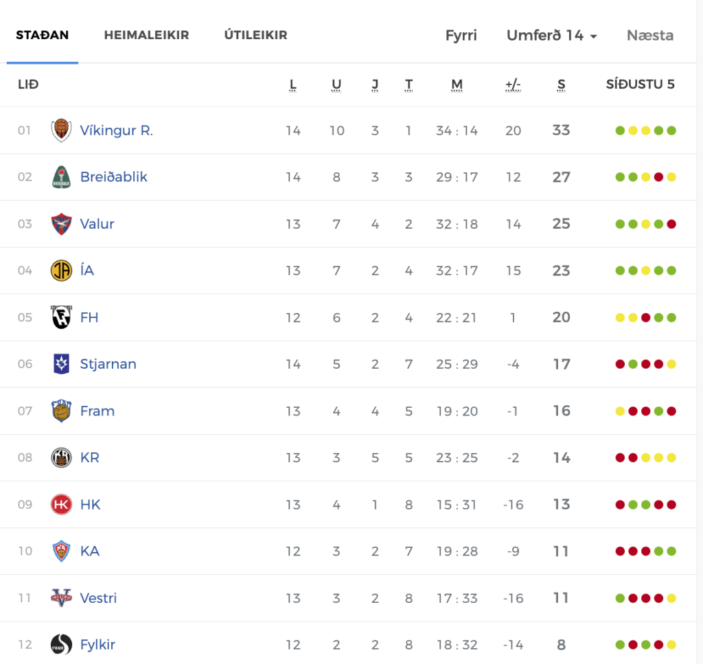 ÍA er í fjórða sæti deildarinnar með 23 stig eftir 13 umferðir.