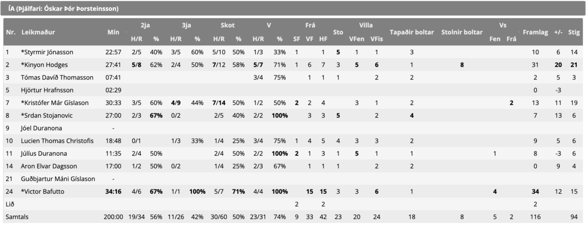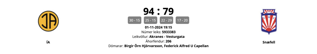 Kynion Hodges skoraði 21 stig fyrir ÍA og var með 8 stolna bolta og 7 fráköst. Kristófer Már Gíslason skoraði 19 stig fyrir ÍA, Styrmir Jónasson var með 14 stig og 5 stoðsendingar. Victor Bafutto skoraði 15 stig og 15 fráköst.