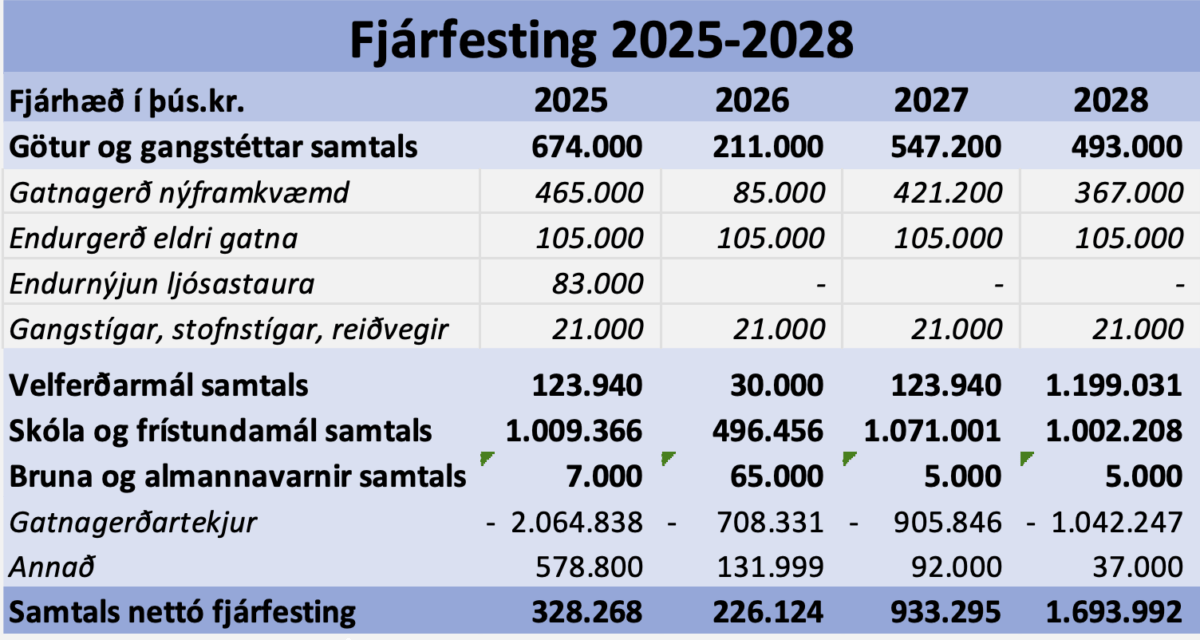 - Fjárfestingar og framkvæmdaáætlun 2025-2028.