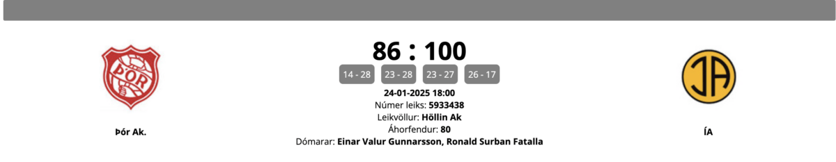 Karlalið ÍA í körfubolta heldur áfram sigurgöngu sinni í næst efstu deild Íslandsmótsins. Skagamenn gerðu góða ferð á Akureyri í gær þar sem liðið sigraði Þór með 100 stigum gegn 86.