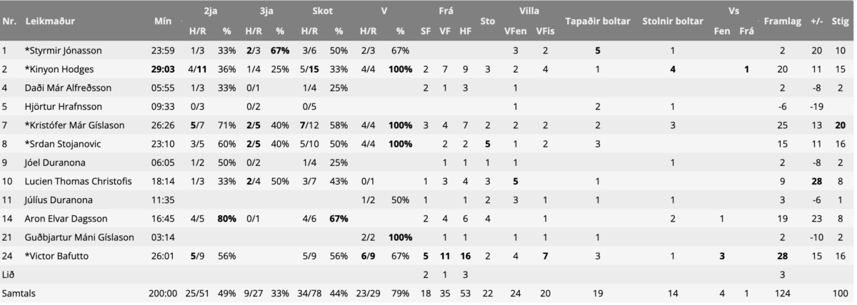 Brasilíumaðurinn Victor Bafutto var atkvæðamestur í liði ÍA í gær en hann skoraði 16 stig og tók 16 fráköst. Miðherjinn öflugi er frákastahæsti leikmaður deildarinnar. Kristófer Már Gíslason, sem kom til ÍA frá Skallagrím fyrir þetta tímabil, var stigahæstur með 20 stig.