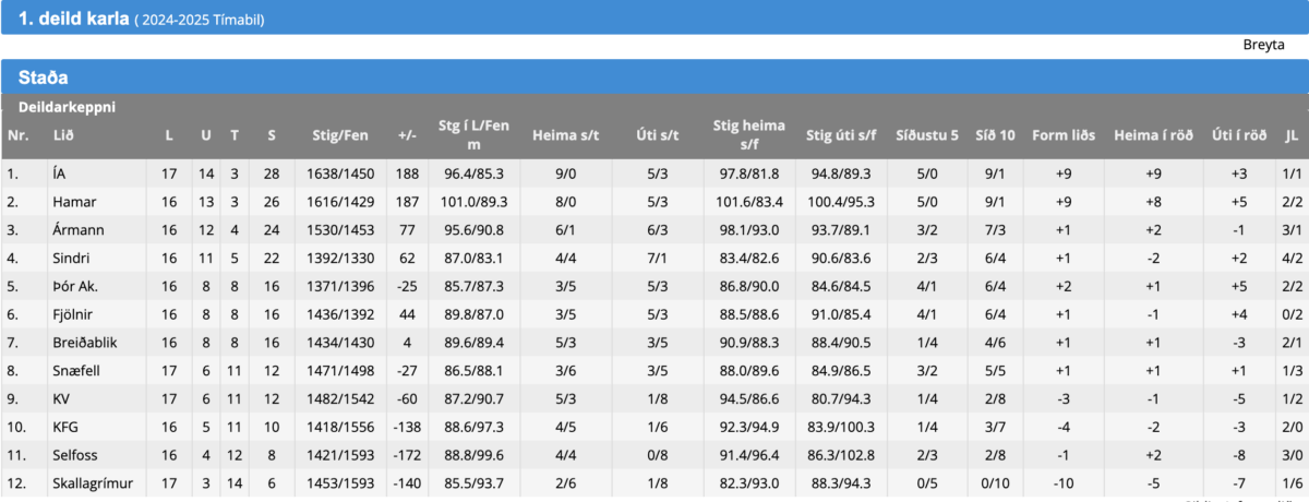 Skagamenn eiga eftir að leika fimm leiki í deildinni og Hamarsmenn koma í heimsókn á Skagann 27. febrúar.