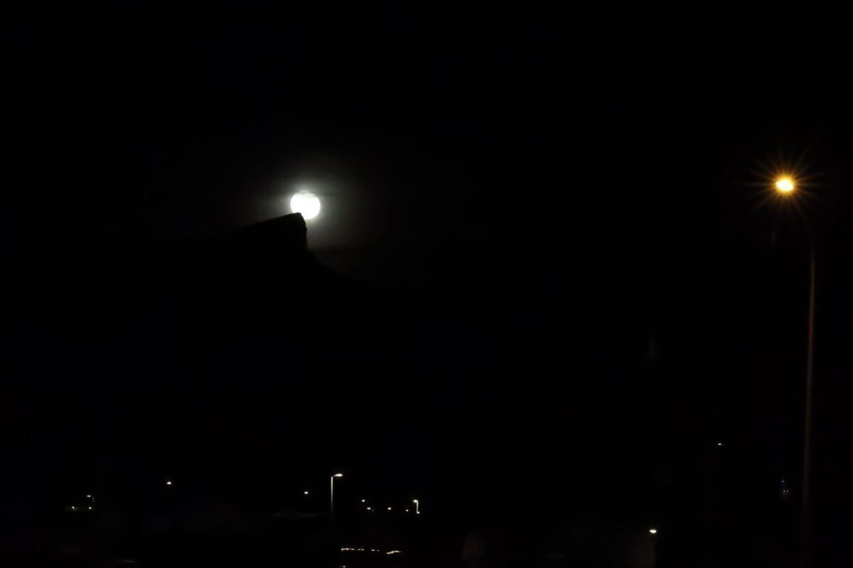 Máninn staldraði stutt við hjá Háahnúki þegar þessar myndir voru teknar.