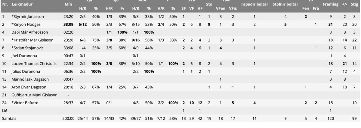 Kristófer Már Gíslason var stigahæstur í liði ÍA með 22 stig, Kinyon Hodges skoraði 20 stig, gaf 9 stoðsendingar og stal boltanum 5 sinnum af andstæðingunum.