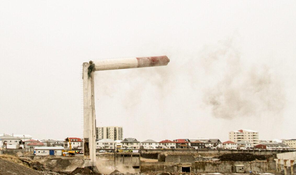 Fyrst var efri hluti hans felldur með sprengihleðslu sem sett var í strompinn í um 25 metra hæð. Fjórum sekúndum eftir að fyrri sprengihleðslan hafði sprungið var sú síðari sett í gang við rætur strompsins. Sú aðgerð heppnaðist ekki og var gert langt hlé á aðgerðinni – en í annarri tilraun féll neðri hluti strompsins.