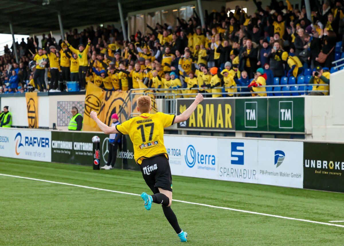Gísli Laxdal fagnar marki. Mynd/skagafrettir.is