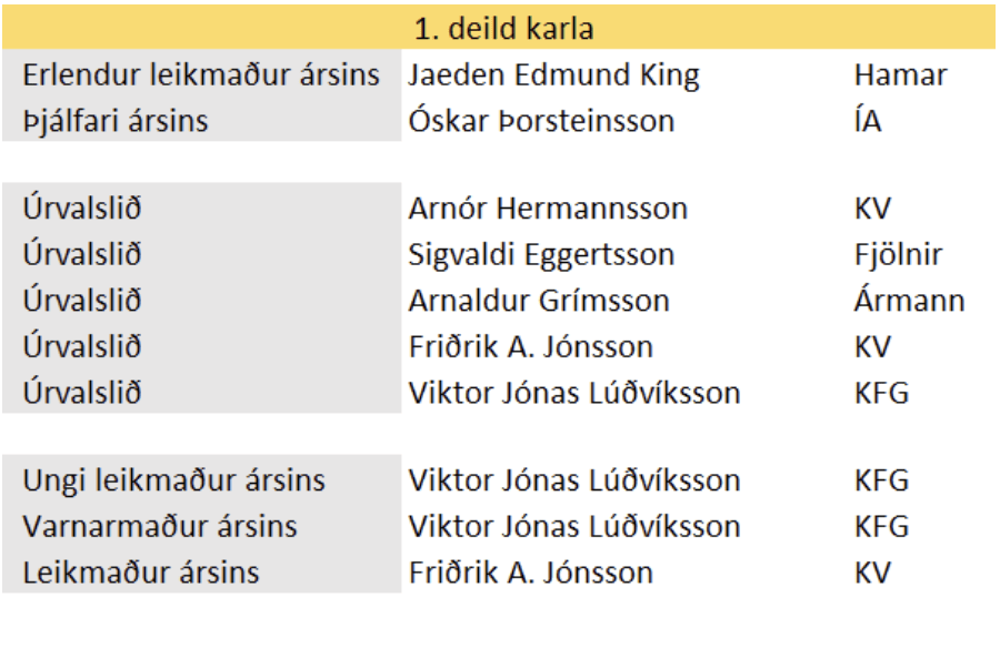 Í úrvalslið ársins er enginn leikmaður úr röðum ÍA en erlendir leikmenn koma ekki til greina í úrvalsliðið deildarinnar.