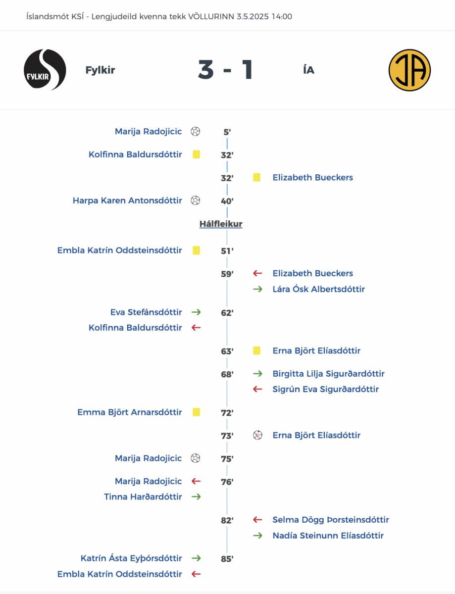 Fylkir komst í 2-0 í fyrri hálfleik en Erna Björt Elíasdóttir minnkaði muninn fyrir ÍA á 73. mínútu.