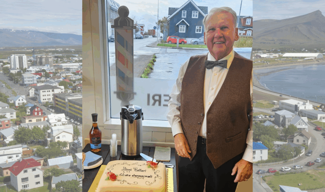 Hinrik Haraldsson hélt í dag upp á 60 ára starfsafmæli sitt sem hárskeri – en hann hóf rekstur á Rakarastofu Hinriks þann 1. október árið 1965.