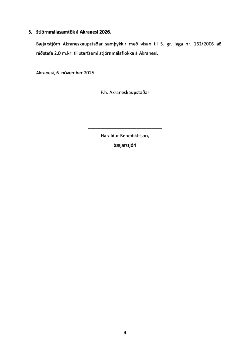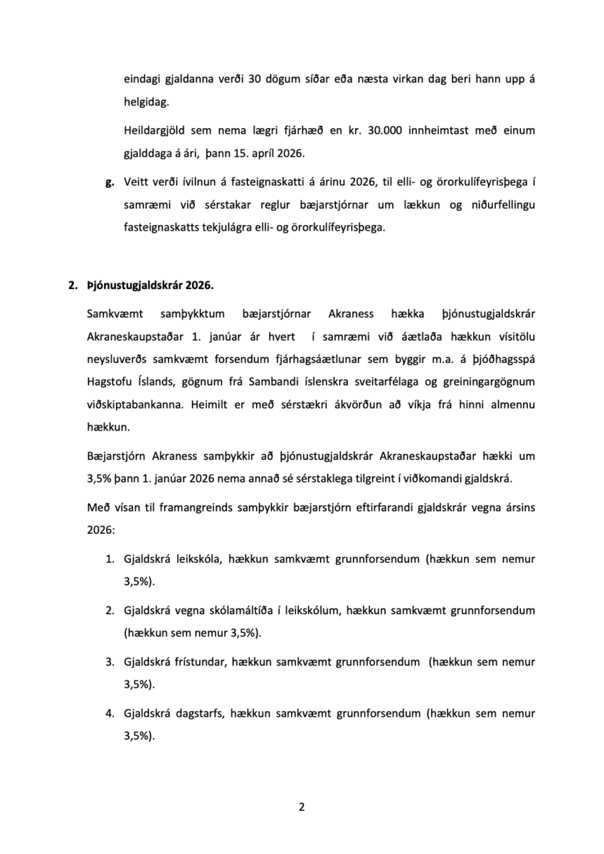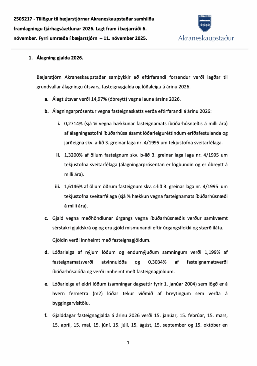 Bæjarstjórn Akraness fjallaði í gær á fundi sínum um tillögur um álagningu gjalda fyrir árið 2026.
