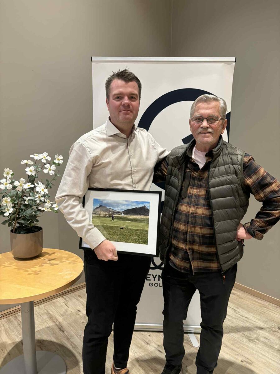 Reynir Þorsteinsson, heiðursfélagi GL, gaf klúbbnum fallega mynd í tilefni 60 ára afmælis GL en Hróðmar Halldórsson formaður veitti gjöfinni viðtöku.