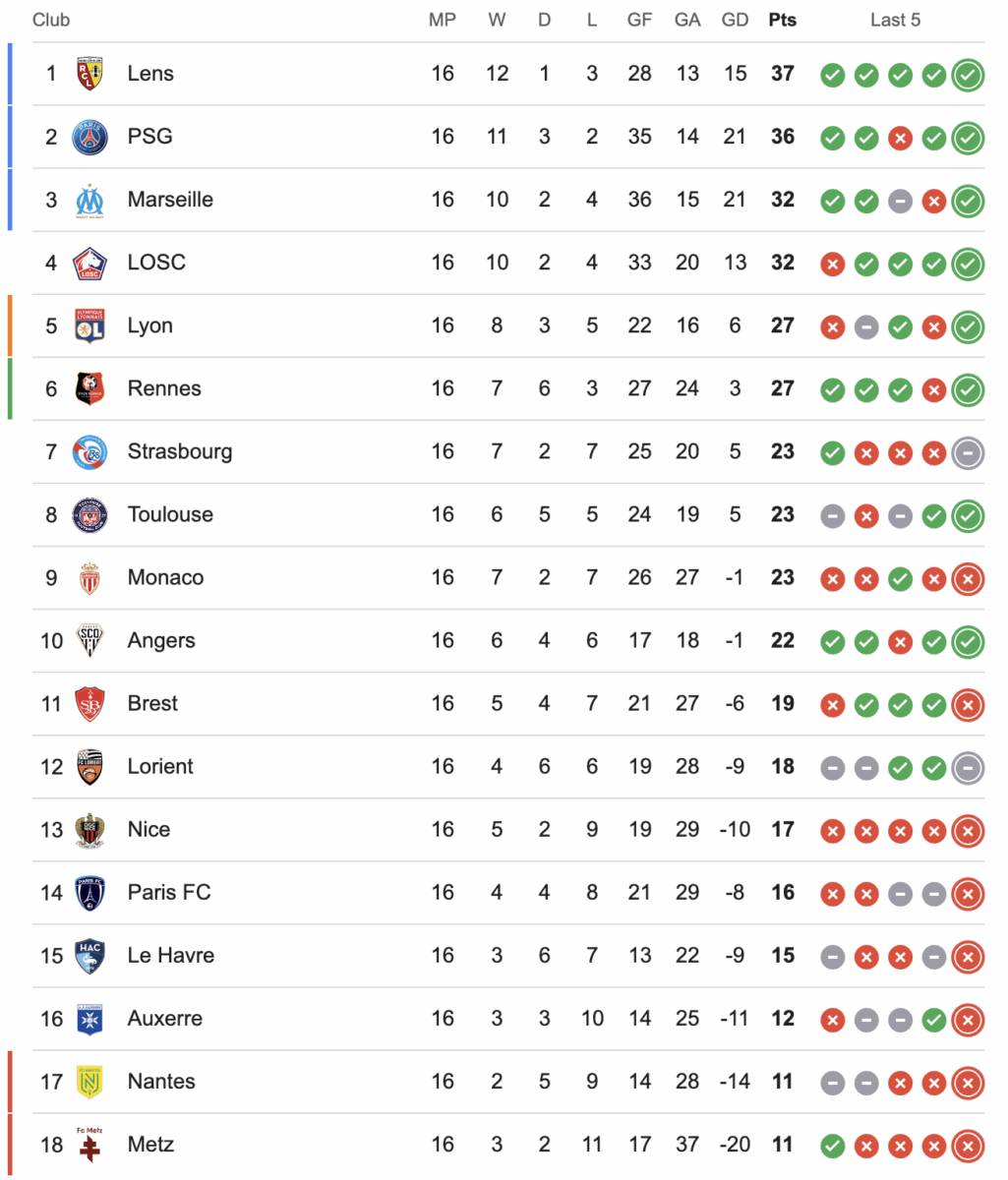 Lille er í fjórða sæti frönsku úrvalsdeildarinnar.