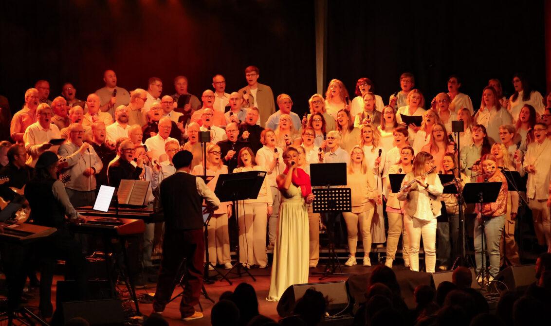 Kór Akraneskirkju og kór Keflavíkurkirkju héldu tvenna tónleika í Bíóhöllinni á Akranesi í gær – þar sem að um 100 manna kór og hljómsveit flutti söngleikinn Jesús Kristur Súpergoð. (Jesus Christ Superstar).