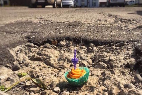 Fagnaði þriggja ára afmæli götuholu með kerti á köku