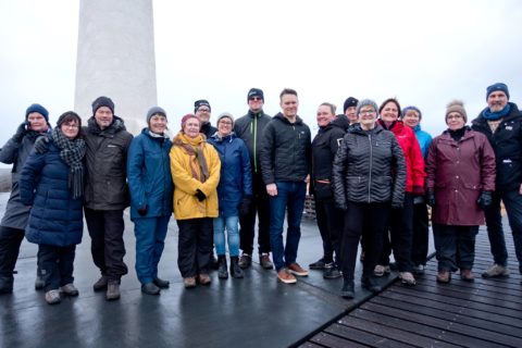 Við hvern var Ágústa að tala í göngutúr Landmælinga Íslands?