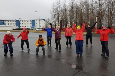 Öflugur gönguhópur stundar holla líkamsrækt í hvaða veðri sem er á Akranesi