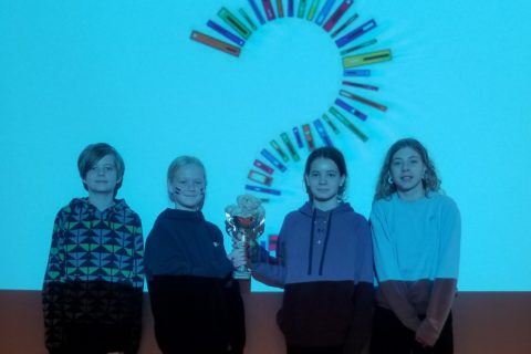 Dagný, Iðunn, Marinó og Arna eru „Bókaormar Brekkubæjarskóla“ 2021