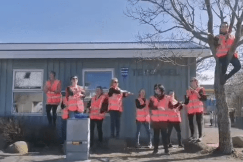 Starfsfólkið á Teigaseli í miklu stuði í skemmtilegri áskorun