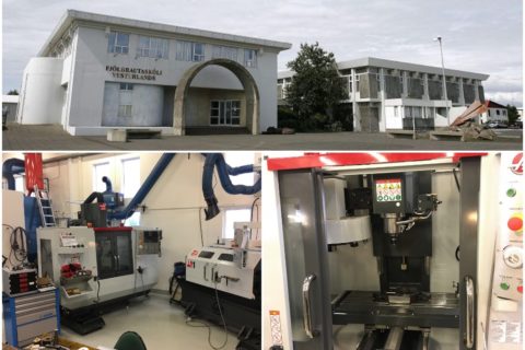Nemendur í vélvirkjun við FVA vinna með nýjan tölvustýrðan fræsara