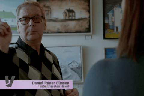 Húsin í bænum áberandi á veggjunum í Hákoti