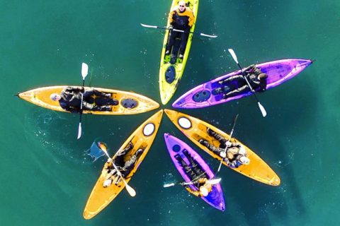 Kajakræðarar léku listir sínar í blíðunni í Akraneshöfn