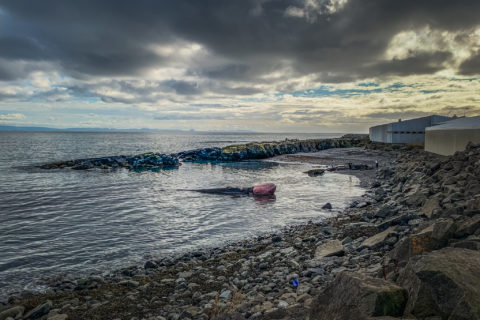Hrefnan í Steinsvör vekur athygli á Akranesi – myndir og myndband