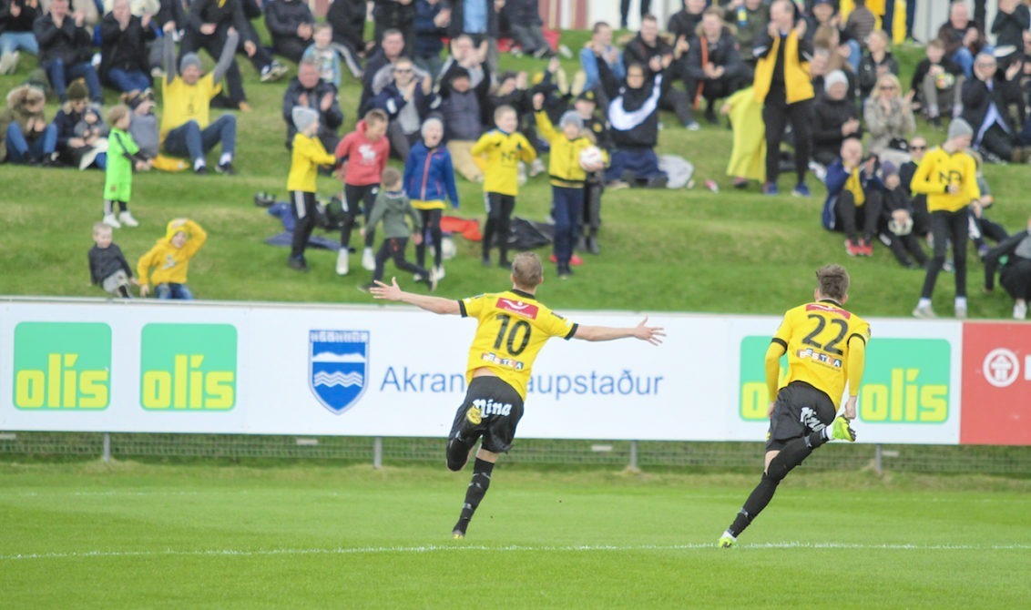 Hallur Flosason og Viktor Jónsson, leikmenn karlaliðs ÍA í knattspyrnu fóru í lauflétta keppni í gær á Norðurálsvellinum. Þar var markmiðið að hitta þverslána sem...