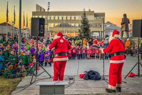 Afmælisbörn úr Akraseli tendruðu jólaljósin á Akratorgi
