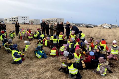 Krakkarnir á Garðaseli í aðalhlutverki við upphaf framkvæmda á nýjum leikskóla