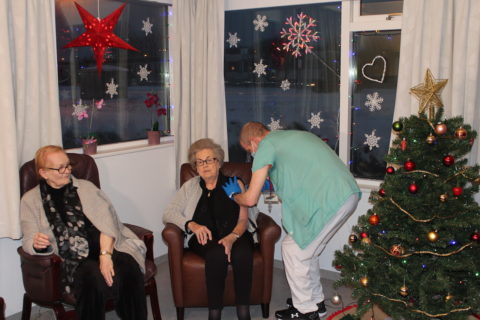 Hulda fékk fyrstu bólusetninguna gegn Covid-19 á Dvalarheimilinu Höfða