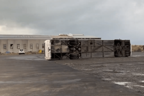 Myndband: Stór rúta fauk á hliðina í ofsaveðrinu við Höfðasel