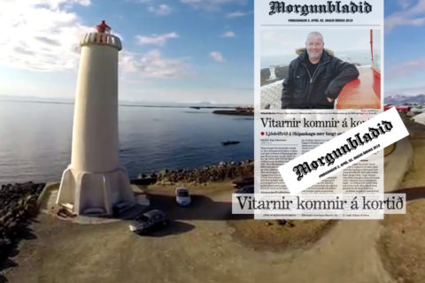 Mogginn með Hilmar vitavörð á bakinu