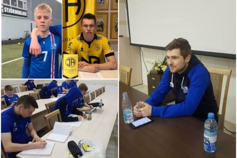 Jón Gísli og Hákon Arnar sitja á skólabekk í landsliðsferðinni